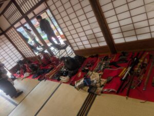 11月16日、西尾市城址公園内近衛邸にて、甲冑啓蒙活動の一環で、一般市民向けに甲冑試着体験会を行いました。支部参加者は14名で、各自所蔵甲冑の子供用、大人用を持ち寄り実施。70名の試着を行いました。海外からの旅行者や名古屋、市内からの家族など色々な方々にサムライ気分を味わって頂きました。