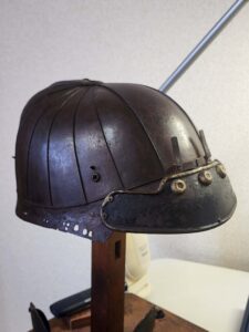 阿古陀兜の語義から解剖学的視点から見た構造、防御力について松本先生に解説頂いた後、持ち寄られた兜について持ち主の研究、考えを交換し阿古陀という兜について理解を深めます。